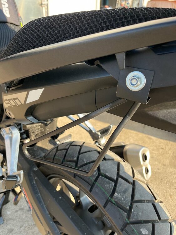 Postavih ove nosače sa Temu. nisu nešto preterano jaki ali za 1500 dinara sam hteo da vidim kakvi su. Potrebni su mi da samo pridrže bočne torbe da ne šetaju ka točku. Neće nositi nikakvu težinu jer to i ne mogu. Svakako sad imam mustru, pa mi može svako napraviti neke jače. Inače su zašrafljene za rupu koja je bila na nosačku kofera, tako da se lepo uklopilo. Eto, možda nekom pomogne...