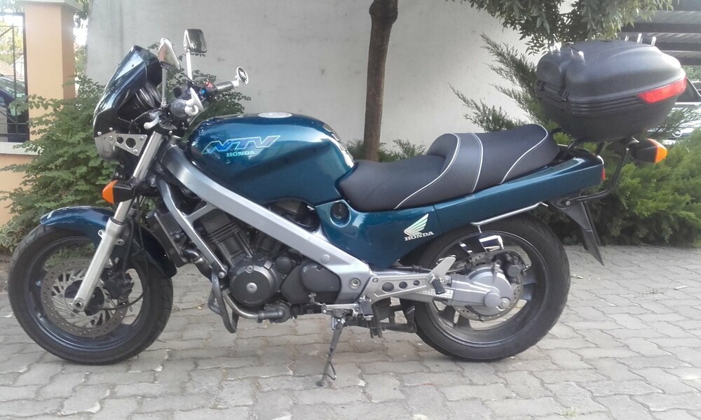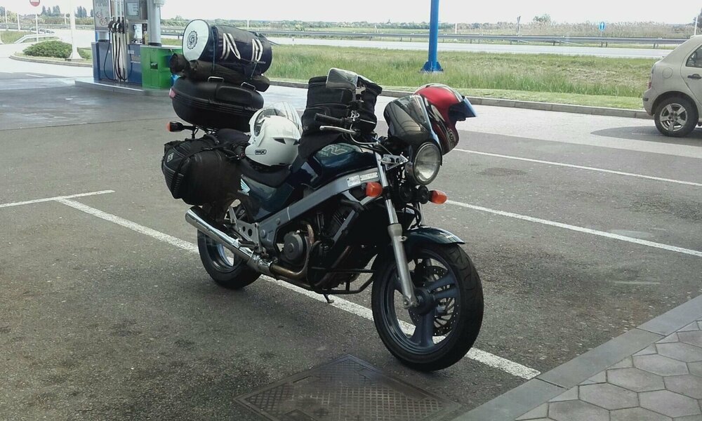 13. Valjda je živa ova Hondica. Ja sam je u septembru 2017. prodao Joci. Kupio sam je u Pozarevcu od coveka koji je uvezao, ako se dobro secam, iz Austrije. Ali je nije vozio. Mnogo dobar motor. Isao sam sa njim na Korziku i na jug Italije. Teska srca prodao jer mi trebao novac za avionske karte za jedan mnogo vazan put. Ja sam mu stavio taj kofer i te metalne uške. Sediste sam radio kod Bobana u Zemunu. Evo slika kako je izgledao ranije i natovaren kad smo krenuli za Korziku.