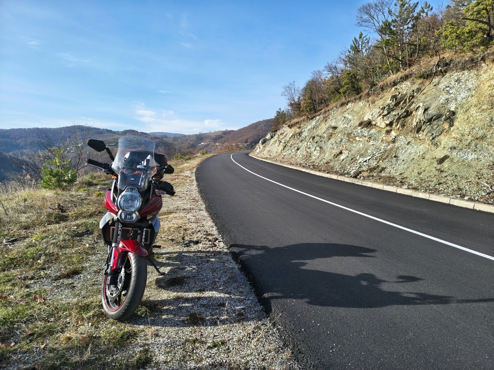 Dan 1. Jagodina-Kraljevo-Ušće-Ivanjica-Prilike-Kokin Brod-Nova Varoš (280 km). Do Kraljeva naravno živi smor....baš ne volim taj put. Pogotovo izlaz iz Kragujevca prema Kraljevu/Čačku. Ali što se mora-nije teško. Jagodina-Batočina-Kg-pa na Kraljevo preko Balosave. Pravo uživanje kreće tek pošto je manastir Žiča ostao iza nas. Ibarska. Prva pauza u Ušću. Tu srećemo kolegu iz Kraljeva na Gileri 500. Zanimljiv momak. Bubnjar, personalni trener, downhill biciklista, moto detailing majstor, čovek maksimalno posvećen svemu što radi. U tom momentu je, kako kaže, išao da vežba leve krivine..."dan kao stvoren za to" dodaje. Mislim da nije na forumu. Razmenismo Insta uz obećanje da će se javiti kada dođe na naš kraj. Zanimljiv momak, kao što rekoh. Vreme je još uvek lepo ali već vidim da će nas uhvatiti mrak. Krećemo dalje i uživamo. Prelepi predeli i super put je skoro sve vreme (ovde kažem "skoro" jer ima delova koji su sa krpljenim asfaltom). U Ivanjici dilema da li da nastavljamo do Nove Varoši ili spavamo tu....naravno da smo krenuli i naravno da nas je već malo iza Prilika uhvatio mrak. Onda je sunčan i topao novembarski dan zamenila novembarska noć....koja naravno nije sunčana a pogotovo ne topla....zapravo sasvim suprotno....vrlo je hladna. Međutim hladnoća je manji problem. Vožnja preko Mučnja po mrklom mraku nije baš nešto što bih preporučio bilo kome. Kao da mrak, hladnoća i krivine nisu već dovoljne, kreće i put da se kvari. Međutim znam od ranije da nailazak ove lošije deonice nagoveštava da smo blizu Kokinog Broda pa se već polako radujem nailasku na put E-763. Ubrzo smo to i dočekali pa je nastavak do Nove Varoši bio "peace of cake". Klopa u piceriji Bona Fides Gusto i odlazak u smeštaj. Good night.