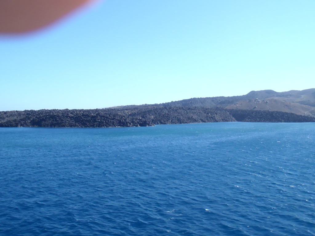 Inače,putovanje trajektom traje oko 9 sati,jer je Santorini zadnje ostrvo.Pre njega staje se na Paros,Naxos i Ios.Cena deck karte je 37e,a za motor je 28e.Niko te ne proverava gde sediš,sa deck kartom ne možeš samo u kabine,verovatno možeš da platiš i neku jeftiniju kartu do prvog ostrva pa da se nastavi,ako si bez vozila ili saputnik.Sam prilaz Santoriniju je veoma atraktivan za razliku od drugih,koja su klasična sušna ostrva bez vegetacije.Santorini je inače ostrvo vulkanskog porekla,pripada Kikladima sa karakterističnom arhitekturom za ovu grupu.Tako je prvo što se vidi crna litica sa belim građevinama na vrhu.To su tri grada Oia,Firostefano i Fira glavni grad.Ovi gradići nemaju plažu nego su atraktivni sami po sebi.Mi smo se namerili u Perisu,glavnu plažu dugu 5km sa crnim vulkanskim peskom i jedna je od najlepših plaža na Mediteranu.Tu smo našli smeštaj za 6e po osobi,smestili se i krenuli u obilazak ostrva,jer smo odmarali dovoljno na trajektu.Super je osećaj voziti se na ovako zabačenom ostrvu,ali ture nisu mnogo duge,u 100km obiđeš sve.Na santoriniju smo bili tri noći i poprilično videli jer još nije počela sezona.Od turista tu su uglavnom Ameri,Kinezi i Japanci.Tu nam se pridružio i bajker Nil (u yamaha košulji) i neke crnkinje iz Bruklina.