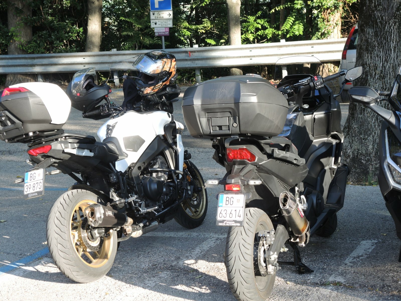 Sreda, u ponedeljak prognoza je bila jaka kiša, ustajemo i rominja kišica kao i juče. Ako stane idemo lokalnu vožnjicu okolo naokolo i poseta mestu Borghetto, koje je prelepo. Kiša staje u isto vreme kao i juče sunce obasjava mesto. Pakujemo se i na motore. Zaboravih da predstavim i drugog člana ekipe Honda Forza 750 - 2025god. Odlično se držala na putu i bili su rame uz rame sa nama. Jedina mana, na AP, kad ode preko 150 oseti se potrošnja. Evo i slike Tracera i Forze. Krećemo lagano i uživamo u vožnji kroz Lombardiju i prelazimo u oblast Veneto i naš cilj za danas - BORGHETTO. Predivan mali gradić na reci Mincio. Pun malih predivnih restorančića. Ovde ostajemo malo duže da se prošetamo i odmorimo uz Aperol i kaficu a i po neki kolačić.