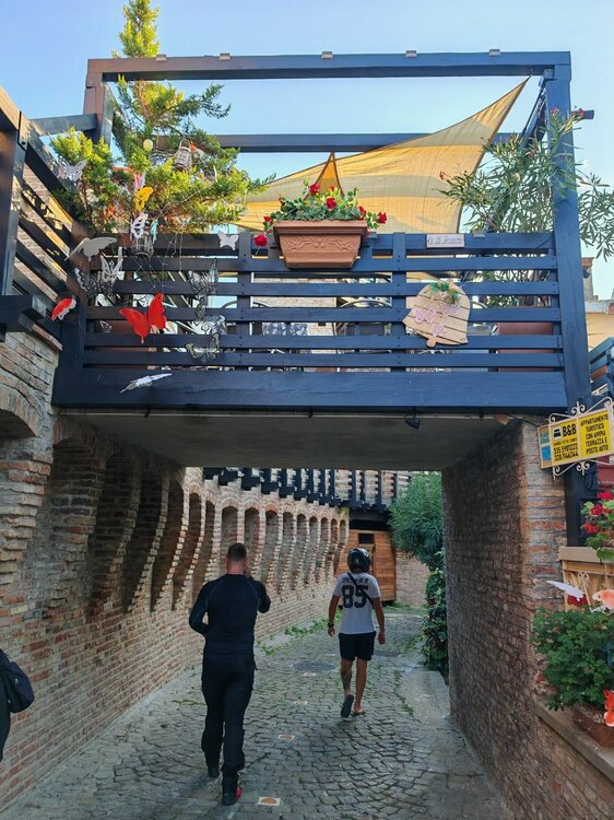 PETAK 12 sep. - ustajemo ujutro odmorni, doručak, pakovanje i krećemo oko 10,30h. Plan za danas vožnja do Riminija i popodnevni odmor u istom. Karte nismo poručili on-line jer nije bilo vremena i dogovaramo se da u subotu ujutro poranimo i gas u Mizano po karte. Ako nam je suđeno čekaju nas. U navigaciji biram opciju - izbegavati putarine i AP. Uživanje počinje. Skoro da nismo naleteli na neke zastoje, sem u blizini Riminija ali motor to ne priznaje, obilazimo lagano. Stigli smo oko 16h, raspakovali se, istuširali i do centra na večeru. Malo se šetkali, klopali zezali i kad su počeli da zatvaraju lokale krenuli lagano ka motorima i na spavanje. Apartman fenomenalan, sve novo, u nekom elitnom naselju. Sve zgradice, tri sprata, na tom placu su ograđene ogradom ima samo jedan ulaz, zgrade udaljene jedna od druge, okolo trava i drveće,video nadzor, miran kraj ... Standardno kao i uvek uzimamo varijantu dve spavaće sobe+dva kupatila. Ne volim da cupkam u redu kad mi se ide u WC. Jeste skuplje ali imam svoj mir .