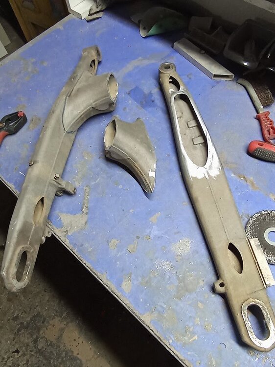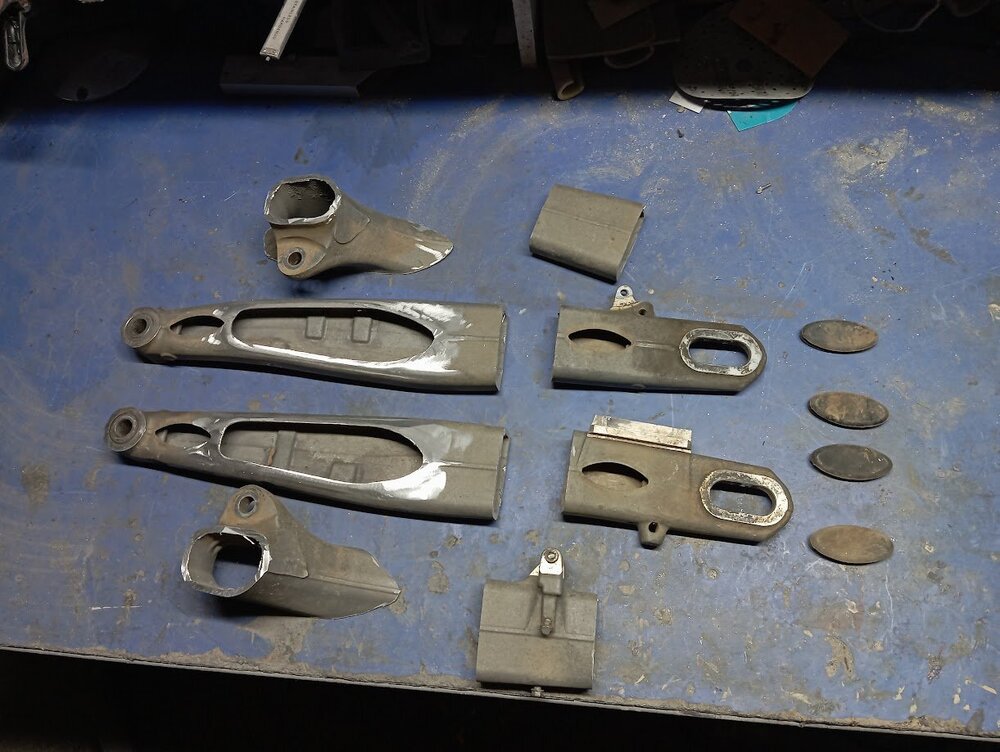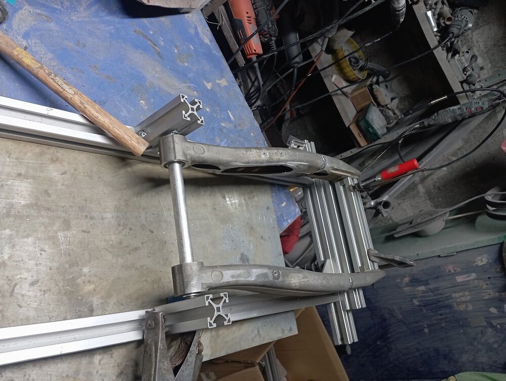 Husqvarna 700 je donirala krivu viljusku. Isecena Na printeru napravljeno par delova za centriranje. centrirano i zapikovano. Ostali su nosaci za amortizere i poprecno ukrucenje.