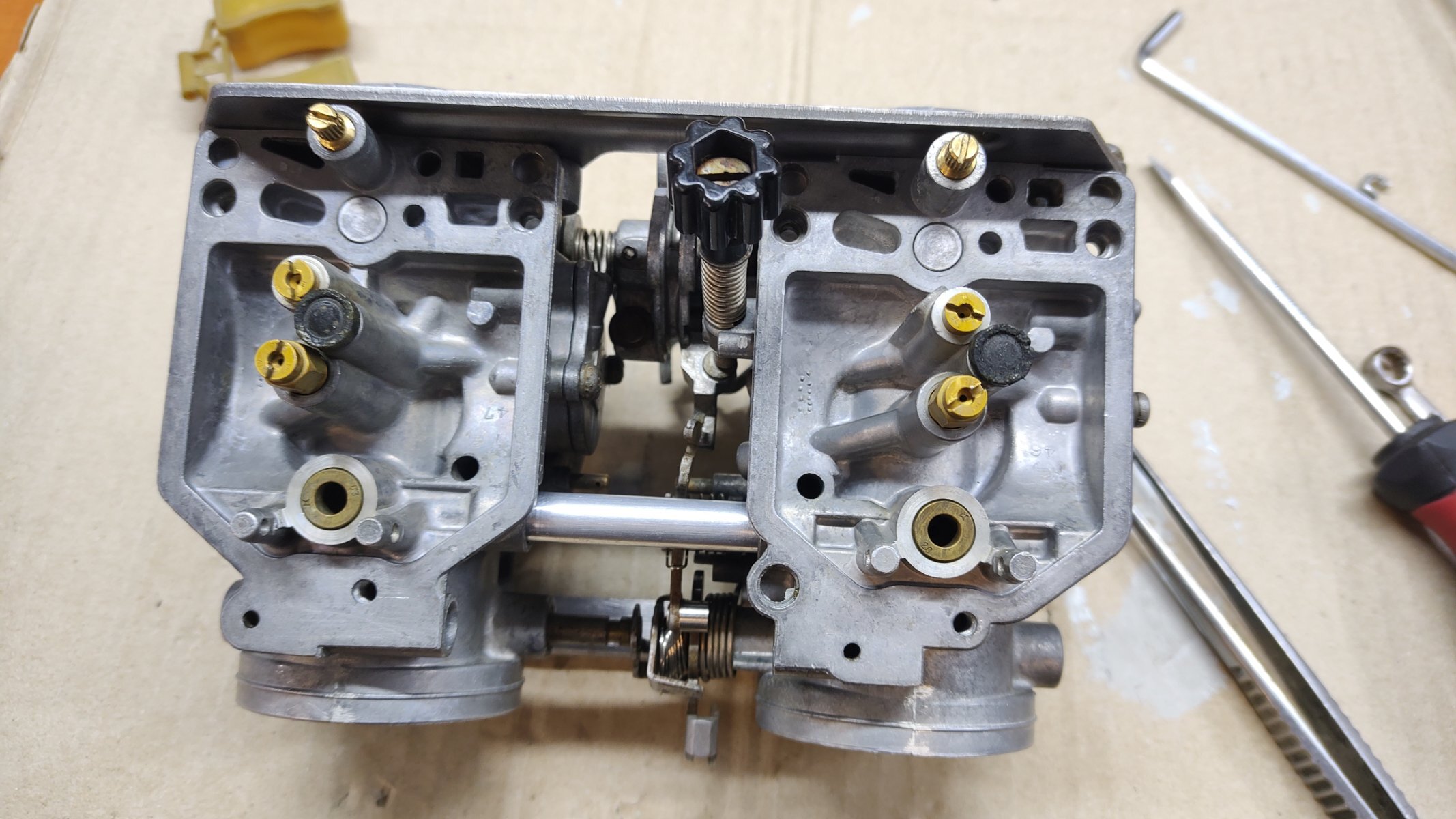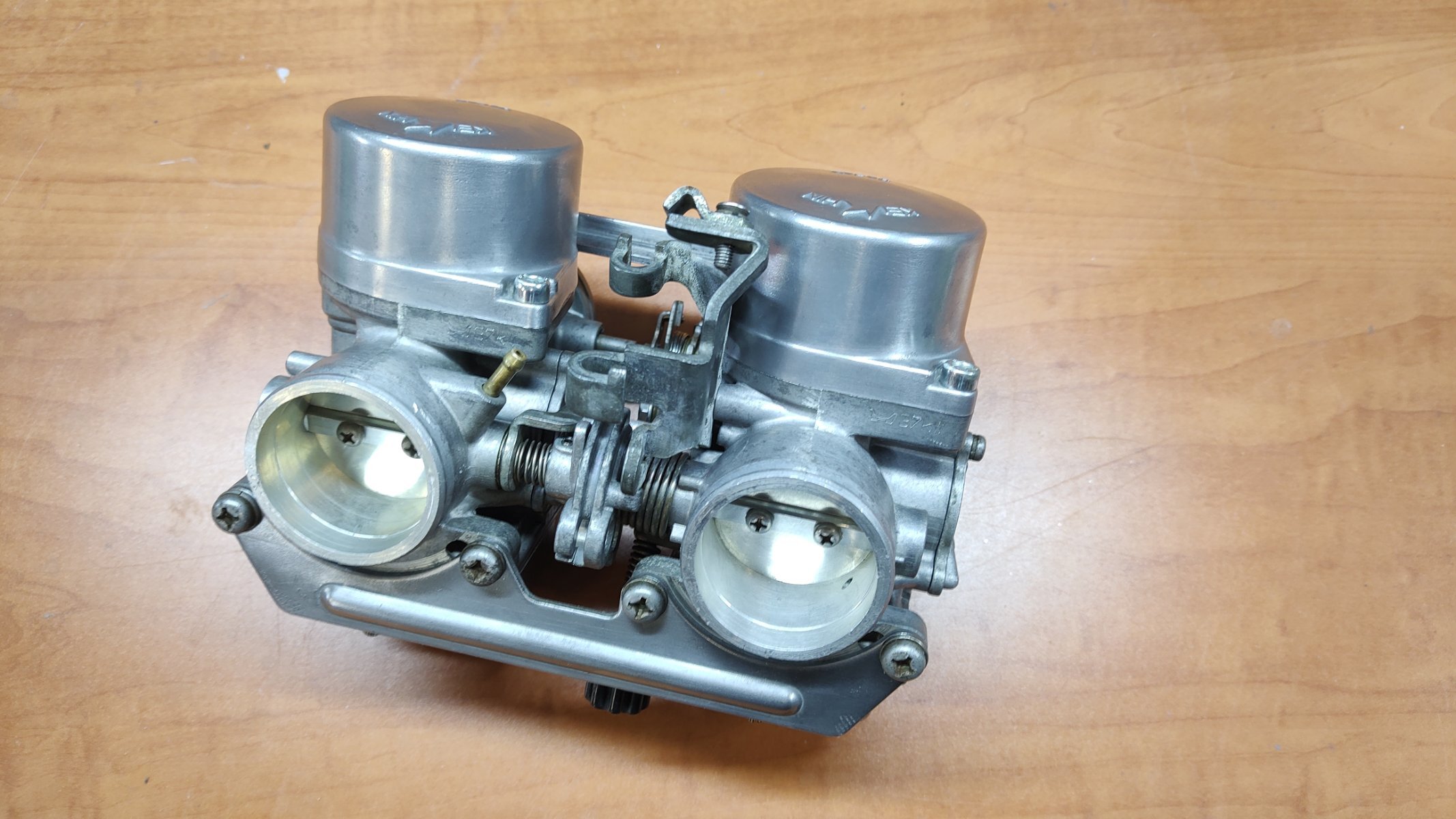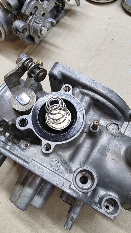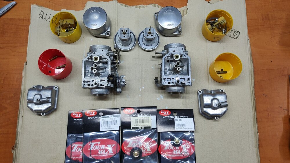 Malo radio oko karburatora. Sve rastavljeno, oprano u uz kadici, bilo je puno slina na kucistu i taloga u soljama. Izduvano, promuckano, obrisano, procackano. Neke delove malo ispolirao, sve gumice nove i silikon sprejem prsno da lepo sazive sa kucistem. Sklopio. U medjuvremenu prestelovao ventile, izduvni bili malo dotegnuti. Sve je to bio laksi deo posla, sad treba ustelovati da radi kako treba. Plovak zatvara na fabricku visinu nivo - 15,5mm, smesu nastelovao na fabricku pocetnu vrednost, 2 kruga otvoreno. Za sinhronizaciju sam nesto smandrljao alat pa cu da vidim kako radi. -