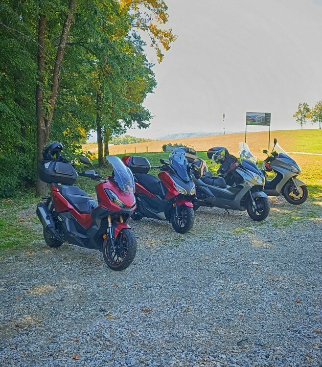 Jucer jedan malo ozbiljnija voznja. Starom Karlovackom do Noveme po neke sitnice. Do Draganica su se ispred mene vozile tri kamikaze sa KR tablicama. Svi 50+ godina. Promet se krece 70-80km/h u oba smjera, dosta gust, oni preticu po crti. Ne opravdavam takvu voznju, al ajde da to odraduju fluidno i ugirano. Al ne. Jedan odvrce gas do ibera, nabija se ovom ispred sebe, onda nasred preticanja koci ko manijak, voze se po 50 m na crti uz auto. Kawasaki er6n i neke dvoje stare Honde, modeli iz 80' i to vise enduro (nije TransAlp, manje su). Nakon Noveme iduce zaustavljanjs je bilo kod Duge Rese na tankanje i dorucak. Zatim preko Josipdola i kroz Liku do Senja na rucak. Taman kad je konobar spustio pizzu na stol ona trojica diletanta sa stare Karlovacke su zivi i citavi sparkirali motore kraj mog skutera. Nakon paze idem po D8 do Rovanjske. Od Rudelica se lijepo peglao za nekim TDM-om i X Max-om (ZD tablice oba) do Rovanjske. Tu su oni otisli na Maslenicki most, a ja prema Gracacu gdje sam napravio jos jednu pauzu i obavio tankanje. Dalje po D1 prema doma nekim srednje turistickim tempom. Al su me oko Plitvica omela 4 Slovenca (MB tablice) pa sam krenuo za njima (tempo 120-130) do KA. Oni otisli na AC, ja nastavio starom. Dosao u VG, produzio do Bune pa preko Podvornice i Busevca nazad doma da prebacim 600km.