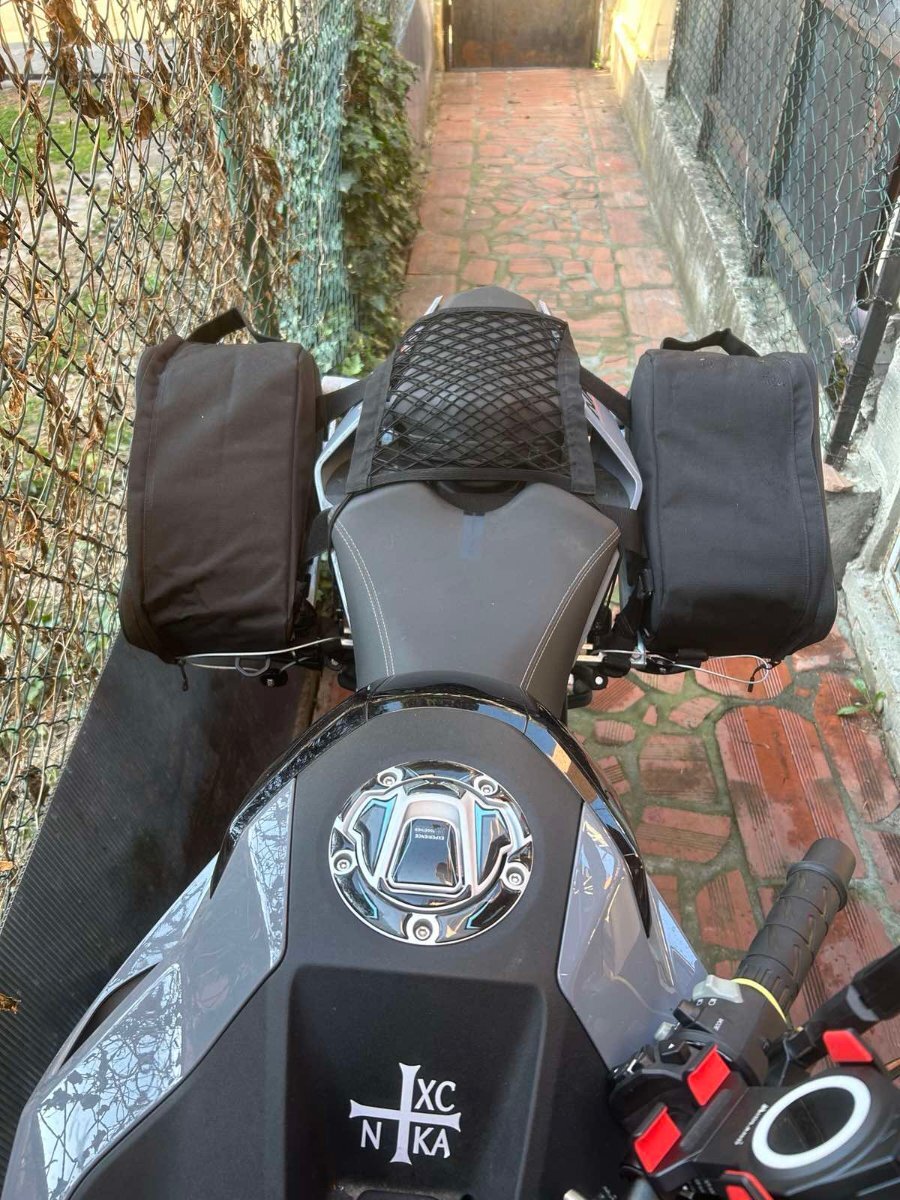 "Zanimljivosti" se nastavljaju i u 2026-oj. Dva dana pre dedamrazijade montirali su mi ring prsten i tank torbu za rezervoar, čekala sam par dana da iz magacina stigne baš za 300NK. Danak neiskustvu i na licu mesta nisam proverila da li se rezervoar lepo otvara. Kako 300NK malo troši danas pred novogodišnju vožnju rešim da ipak dopunim rezervoar i - crvc - nema otvaranja čepa. Sreća pa sam imala dovoljno goriva da odem do parkinga kod Arene gde je bio dogovoreni polazak i tamo su me opet spasili naši drugari sa foruma. Analiza, konsultacije, vadi se alat i... skinemo prsten. Verovatno može malo uz pomoć turpije da se namesti da sve funkcioniše, ovih dana dok bude tog strašnog snega označiću sve u garaži (koliko i gde treba da se isturpija pošto deluje da je milimetar u pitanju ali na oba dela) i dok opet dodje plus napolju nadam se da taj deo imam rešen. Ako onaj sa "pogrešnog" ramena misli da može da me pokoleba u vožnji cele zime džabe se trudi. Lik sa pravog ramena i ja, uz pomoć Boga ako dozvoli, sve ćemo da prevazidjemo i rešimo. Ipak svako od nas ko je više od jednom seo na dva točka mora da ima ozbiljnu dozu ludila tako da svakako sitnice ne mogu ništa mojoj dijagnozi.