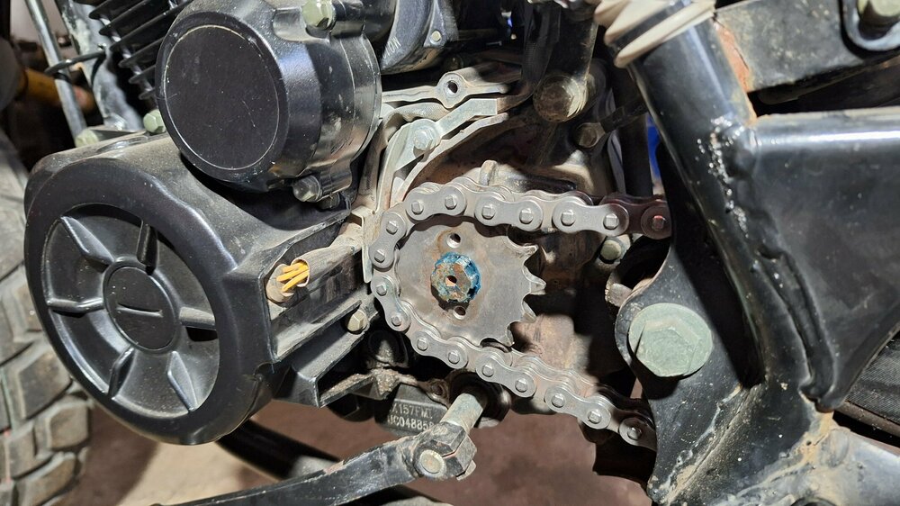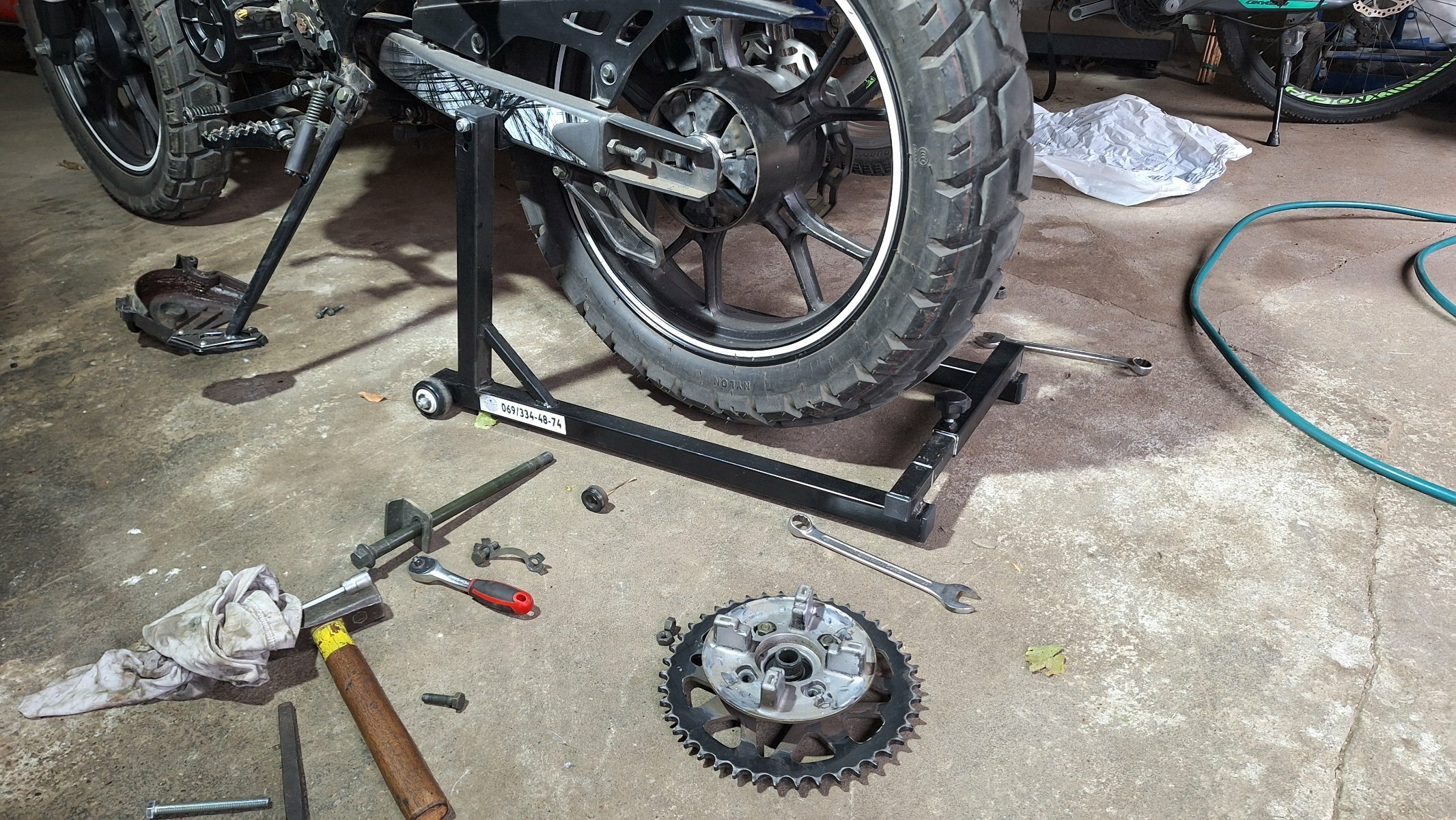 Na sinovom motoru oprao lanac, dotegao zadnji lančanik, podmazao nutove na prednjem lančaniku, podmazao lanac.