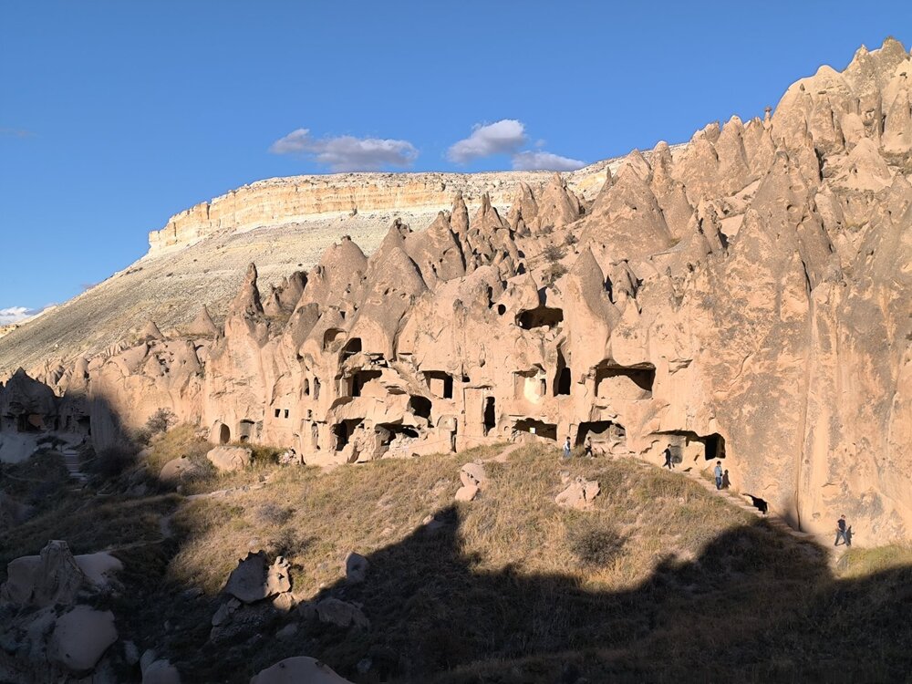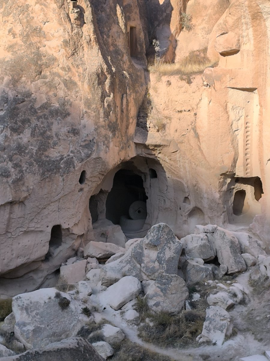 Zelve Open Museum Zelve je impozantno selo u kojem su ljudi živjeli sve do pedesetih godina prošlog vijeka. Dolazimo na parking i, po već ustaljenom kapadokijskom receptu, parkiramo „na foru“, praktično na samom ulazu. Niko nas ne opominje, niko se ne buni. Kao da ovdje još uvijek važe neka druga, starija, po bikere ljudskija pravila. Već na prvi pogled Zelve izgleda wow. Žućkaste, skoro zlatne stijene iz kojih je doslovno izdubljeno cijelo naselje. Selo se sastoji od tri doline, odnosno tri duboka usjeka u stijenama, između kojih se prostiru plodne ravnice. Te ravnice su vijekovima hranile zajednicu koja je ovdje živjela, obrađivala zemlju, čuvala stoku i opstajala u uslovima koji danas djeluju gotovo nezamislivo. Po liticama oko dolina nalaze se crkve, džamija, kuće, skladišta, vinarije u kojima se pravilo i čuvalo vino, javni mlinovi u kojima su se mljela žita, kao i bezbroj malih prostorija čija je namjena bila prilagođena zajedničkom životu. Sve je planski rađeno, bez arhitekata u današnjem smislu riječi, ali s nevjerovatnim razumijevanjem prostora, klime i prirode. Kapadokija nije nastajala na papiru, nego u glavi i rukama ljudi koji su morali preživjeti. Zelve je kroz istoriju bio važno monaško i civilno naselje. Još od ranohrišćanskog perioda, kada su prvi hrišćani bježali od progona Rimskog carstva, Kapadokija postaje njihovo utočište. Ovdje su nastajale zajednice koje su živjele u potpunoj izolaciji, ali i međusobnoj solidarnosti. U Zelveu su hrišćani i muslimani stoljećima živjeli jedni pored drugih, koristeći iste staze, iste izvore vode i iste zajedničke prostore. Džamija uklesana u stijenu stoji svega nekoliko desetina metara od crkava, što je danas rijedak, ali snažan podsjetnik na jedan drugačiji oblik suživota. Crkve u Zelveu su jednostavne, ali autentične. Freske su skromnije nego u Göremeu, ali baš u toj skromnosti leži njihova snaga. Scene iz Biblije su oslikane zemljanim pigmentima, bez zlata i raskoši, ali s jasnom porukom vjere i istrajnosti. Neke su toliko visoko u stijeni da se pitaš kako su ljudi uopšte dolazili do njih, a kamoli ih gradili i koristili. Posebno fasciniraju stambeni prostori. Kuće su imale više spratova, povezane tunelima i stepenicama koje su danas izlizane od vjekovnog korištenja. Unutra su prostorije za spavanje, kuhanje, skladištenje hrane, pa čak i posebni prostori za stoku. Dimnjaci i ventilacioni kanali su pažljivo planirani kako bi dim izlazio, a unutra ostajala toplina. Ljeti je unutra svježe, zimi toplo — prirodna klimatizacija koja radi i danas. Zelve je bio naseljen sve do 1950-ih, kada su vlasti odlučile da je život u stijenama postao previše opasan zbog erozije i odrona. Stanovnici su preseljeni u obližnja sela, a Zelve je ostao kao svojevrsni muzej na otvorenom. Ljudi su otišli, ali su njihovi tragovi ostali urezani u kamen. Ovdje nema vitrina ni stakla između tebe i prošlosti — hodaš direktno kroz nju. Dok šetamo ovim dolinama, hodamo po istoriji, a da umor uopšte ne osjećamo. Iako smo na nogama od ranog jutra, kao navijeni, sve je i dalje zanimljivo. Bez obzira na sve što smo danas već vidjeli, Zelve nas ponovo fascinira. Snalažljivost, upornost i snaga ljudi koji su ovdje živjeli ostavljaju snažan utisak. Ovo nisu bile bogate civilizacije s obiljem resursa — ovo su bili ljudi koji su znali iskoristiti ono što imaju i prilagoditi se surovoj, ali lijepoj prirodi. Na trenutke zastanemo i samo šutimo. Gledaš te stijene, ulaze u kuće, prozore bez stakla, stepenice koje nigdje ne vode i shvatiš koliko je malo potrebno čovjeku da preživi, a koliko smo mi danas daleko od toga. Zelve nije samo turistička atrakcija — to je lekcija iz skromnosti, zajedništva i prilagođavanja. Na crvene stijene ovaj put ne idemo. Noć se već polako spušta, a i realno – crvene stijene su u Kapadokiji svuda oko tebe. Gdje god da se okreneš, vidiš ih kako mijenjaju boju u zavisnosti od svjetla, doba dana i ugla pod kojim ih gledaš. Nema osjećaja da nešto propuštamo. Idemo u hotel, plan je sat odmora i malo kupanja, pa onda večera. Put nas svakako vodi kroz Göreme i usput primjećujemo jedan restoran koji izgleda ozbiljno već na prvi pogled. Veliki, osvijetljen, pun ljudi. Kasnije u sobi, iz radoznalosti, bacamo pogled na recenzije i vidimo da ih ima preko 15.000 – i skoro sve su odlične. Tu dileme više nema. Večera je riješena. Restoran je ogroman, prostire se na tri etaže, ali ono što odmah primijetiš je organizacija. Konobari ne trče bezglavo, nema galame, sve djeluje uhodano. Prvo dolazi glavni konobar, čovjek koji očigledno zna posao. Razgovara s gostima, pita odakle smo, objašnjava jelovnik, savjetuje. Uzima narudžbu za piće i meze, prenosi je pomoćniku, a onda se vraća da detaljno objasni glavna jela. Narudžba pada na roštilj, ali i na jedno jelo koje nam posebno zapinje za oko – meso u glinenom ćupu, hermetički zatvorenom komadom tijesta, koje se ispeče kako se jelo kuha-Testi kebab. Juneće meso, malo paprike, luk, paradajz, začini… nešto između gulaša i kebaba. Sve se to dugo krčka na vatri i uglju, u vlastitim sokovima. Posluživanje tog jela je pravi mali performans. Prvo se začuje zvonjava, kao najava. Zatim dolazi konobar s vrelim ćupom, uzima nož i preciznim udarcima razbija gornji dio posude. Para izlazi van, miris udara u nosnice, a onda sa dvije viljuške, jer se ćup ne može ni dotaknuti rukom, istresa meso na limeni tanjir. U tom trenutku jelo je servirano. Od tog trenutka treba možda minut da se sav onaj saft, koji se služi uz somun, potpuno „počisti“. Još pola minute kasnije, nema ni mesa. Nevjerovatno ukusno. Jedan od boljih kebaba koje sam jeo u Turskoj, bez ikakvog pretjerivanja. I ostatak večere prolazi u istom tonu – uživanje bez žurbe. Vrhunac večeri, naravno, dolazi na kraju. Kunefe. Onaj desert zbog kojeg je kum prethodne dvije večeri bio na svojevrsnoj apstinenciji. Lju