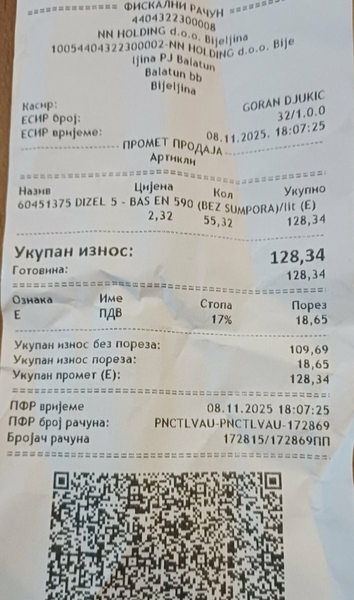 Slika sa jedne pumpe u okolini Bijeljine od prošle nedelje