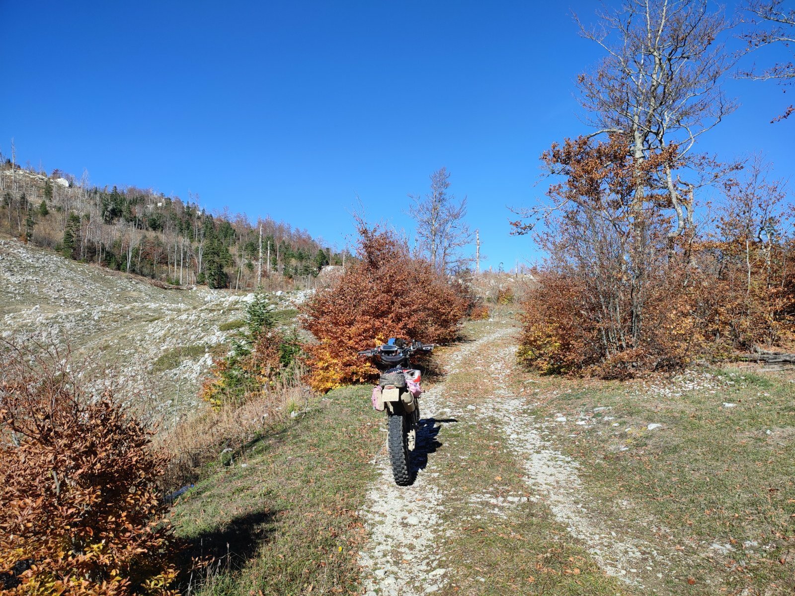 makikt 4327 Napisano Octobar 20 Zainteresovan, 842 postova Lokacija: Beograd Motocikl: Lucifer Prijavi odgovor kao problematičan 19.10.2025. Zečka 1420 mnv Dužina rute 53,4 km Danas je osvanuo lep, sunčan dan, posle jučerašnjeg tmurnog i kišovitog. Idealan za aktivnosti u prirodi, a i vožnju motora. Jedini problem je bio taj, što sam u nedostatku sa vremenom. Ali priliku treba iskoristiti, bar na kratko. Nisam sigurna koliko ću u narednom periodu često imati takvih prilika. Provozaću se malo preko puta, razmišljam. Pošto je padala kiša prethodnih dana, zemlja je mokra i klizava. A moji kramponi, ćelavi. Preko puta su šumski, zemljani putevi. Sigurno će biti klizavo. To su isti oni putevi kojima sam zimus vozila kada sam naletela na led i polomila stopalo. Led je klizaviji od blata, ali moje ćelave gume nisu baš za vožnju ni po blatu. Ali sunce tako lepo sija, i nebo je sasvim čisto i plavo. Moram se provozati, makar malo. Evo, ići ću putem koji dobro poznajem, paziću kuda vozim i neću ulaziti u rizične situacije. To je bilo samo dok nisam krenula. Čim sam prešla sa druge strane magistrale, više nisam imala želju da idem uobičajenim putem ka Crkvinama. Sad je prilika za nešto malo izazovnije. Hoće li biti druge ili ne, ne znam, ali ovu treba iskoristiti. Da probam nizbrdo do Sjevernice, pa onda gore onim strmim putem izbrazdanim vododerinama, do Markovića laza? To je onaj deo teta preko Prekobrđa, koji je izazovan i kada je suvo, a sada ovako mokar i klizav, za moje potrošene gume biće baš izazov. Nisam baš dobro razmislila o tome, a već sam se spuštala nizbrdo ka Sjevernici. Taj deo puta je ranije popravljan pa nije bio toliko loš za vožnju. Problematičan je bio uspon posle mosta. To je uspon koji traje. Povremeno menja pravac u serpentinama. A gotovo celom dužinom je bio izbrazdan i oštećen. U očekivanju katastrofalne situacije, prijatno sam bila iznenađena kada sam videla da je u međuvremenu čitav taj zemljani uspon popravljen. Sve do početka kamene deonice. Ona je još u gorem stanju nego što je bila. Ali u ovoj situaciji, sa ovakvim gumama lakše sam se izborila sa kamenom nego što bih sa vododerinama na blatnjavom strmom usponu. Još nisam odlučila da li ću praviti krug preko Uvača, pa na Lopate, Slacko i Štavanj, ili možda samo da izađem na Zečku pa istim putem nazad. Ne sećam se ni kako sam prvi put pronašla tu Zečku. Ali od tada, kada god tuda prolazim, popnem se na taj vrh. Tu se nekako osećam kao da sam na krovu sveta, iako je nadmorska visina svega 1420 mnv. Ali pogled je taj koji stvara takvu magiju. Danas sam pomalo emotivna, pomalo setna. Gledam sve te predivne vrhove ispred. Komovi se još bele, ostali su u braon i zlatnim tonovima. U zadnjem redu naziru se i Prokletije. Toliko puta sam gledala te vrhove sa različitih pozicija. A uvek i iznova me pogled na njih duboko dodirne. I svaki put se pitam, da li je ovo poslednji put da ih ovako gledam? Nikada mi nije dosta. Sećanja jesu nešto što čoveku ostaje kada više ne bude u prilici da ponovo bude tu. Ali sećanja vremenom blede. Možda ne nestanu sasvim, ali zafali po neki detalj, neka nijansa. Zato toliko slikam. Želim da zabeležim , trenutak, kadar, ono što moje oko u tom momentu vidi. To je ujedno i ono kako ja doživljavam ta mesta do kojih vozim i ono što odatle mogu videti. To delim sa vama. A ujedno je to podsetnik i sećanje meni na sve te lepe, posebne trenutke, pejsaže i predele, koje sam doživela i osetila, za neko buduće vreme kada mi sve to ne bude više tako blizu i dostižno. Život jeste lep. Predivan. Iako nam se mnogo puta tako ne čini. Ja sam svoj živela po svom, posebno ovih zadnjih godina od kada sam u Crnoj Gori. I mnogo toga lepog je prošlo kroz moj život. Možda nisam svakog trenutka bila budna, pomalo sam ponekad bila i uspavana. Ali onda kada sam bila budna, živela sam burno i intenzivno. Nisam želela ništa da propustim. Naročito sa motorom. Pa, sada mogu reći da sam dosta toga što sam želela, sa motorom i uradila. I da sutra bude kraj ove lepe moto priče, ne bi mi bilo žao. Eh, kada bi to tako bilo. Čovek ne bi bio čovek da ne želi uvek još i više Vratila sam se istim putem. Kad je izazov, neka bude do kraja. I na gore , i na dole 10 Citat Podeli ovaj odgovor sa prijateljima Link to post Share on other sites More sharing options...
