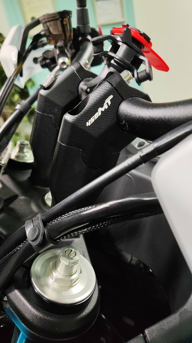 Rapax 69 Napisano Sreda u 22:05 (promenjeno) U prolazu, 34 postova Lokacija: Beograd Motocikl: 450CL-C, 450MT Prijavi odgovor kao problematičan Ok, znači niko nije stavljao podizače. Evo slika kad sam postavio. Crevo od prednje kočnice sam morao malo da izvučem da bi mogao korman gore. Sajla od kvačila mi malčice deluje pretegnuta kad okrenem korman, ali ne znam kako da je produžim, vrv ne može. U vezi obrtaja na 450 agregatu. Kod CLC su otprilike kao sa 15/45. CLC ima istu težinu i isti agregat, tako da... Baš me zanimaju iskustva ako neko stavi 45, jer i ja planiram. CLC nema problem sa ubrzanjem a na 140 je oko 7000+ što je dosta manje nego kod MT sa 15/47. Ali i mapa ubrizgavanja je sigurno drugačija. Takođe zadnja guma 150/70/18 ili 140/80/18 će dati manje obrtaje, slično kao kad bi stavio 45 zupčanika. Tako da merenja sa tim dimenzijama nisu merodavna što se obrtaja tiče. Promenio Sreda u 22:10 član Rapax Citat Podeli ovaj odgovor sa prijateljima Link to post Share on other sites More sharing options...