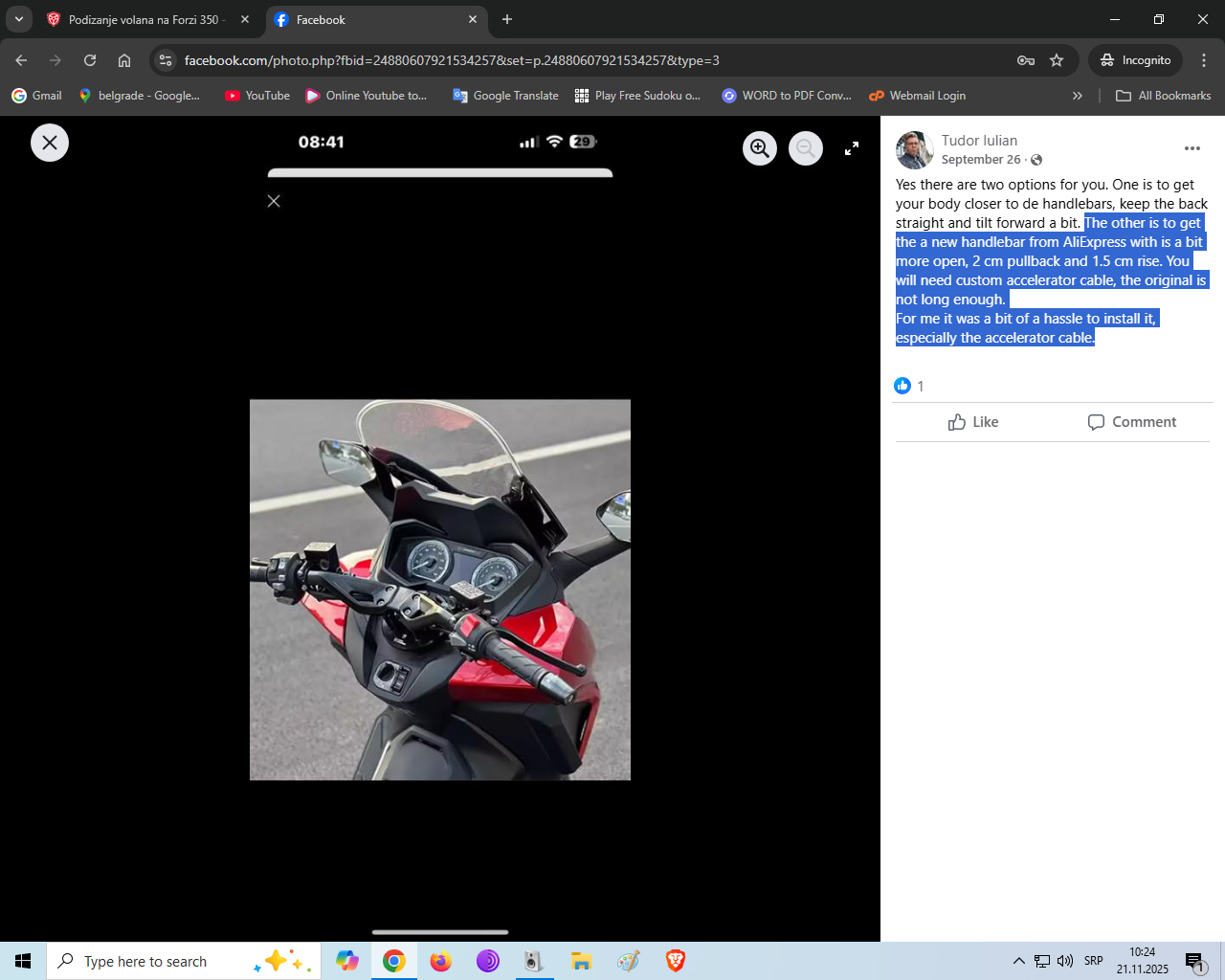dr.srba 49 Napisano pre 49 minuta U prolazu, 24 postova Lokacija: Beograd Motocikl: Honda Forza 350 Prijavi odgovor kao problematičan Poštovani korisnici i obožavaoci maksi skutera, u koje ubrajam i sebe (mada me i motori sve više vuku nekako, brinem se pomalo), ima li neko od vas odgovor na moje pitanje sadržano u naslovu. Fali mi tih (famoznih) 5cm da bi sve bilo savršeno, jer ja sam savršeno 193, pa me savršeno posle sat vremena vožnje otkida desna lopatica, kolko god se aktivno ponašao i prlagodjavao u sedalu. Dakle, ima li ikakvih tehničkih mogućnosti i varijanti, a i majstora za restiling u ovoj našoj lepoj Serbiji, da može da reši ovakvu vrstu zahteva? Hvala u napred na odgovorima.... Citat Podeli ovaj odgovor sa prijateljima Link to post Share on other sites More sharing options...